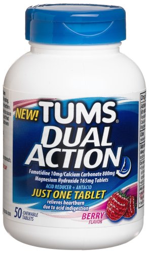 Product Name : Tums Dual Action Acid Reducer plus Antacid Chewable Tablets, 50-Count Bottle, Berry Flavor}